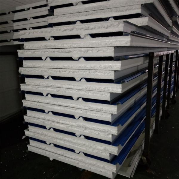 Polystyrene(EPS) sandwich panel is a new type of construction panel which made of outer layer both side of prepainted steel coil and inner layer of polystyrene by computer -controlled color steel shaping machine and covered with high -strength adhesive .The connection can be two ways , one is drilling on the panel and jointing with bolts and nuts , the other is opening groove on the panel and connecting with bolts . Wall panel and roof tile has 50mm , 75mm , 100mm , 125mm , 150mm foam with 0.326mm , 0.376mm , 0.426mm , 0.476mm steel sheet widely use for prefabricated house , construction site , bulidng , warehouse , worker camp , office ect . It is low cost and thermal insulation , waterproof , sound insulation .The fix width of wall panel only has 1150 and 950 mm , 840mm and 1050mm for roof tile , length is no limte but less than 12000mm because of the transportation . The surface metal coat could adopt galvanize aluminum steel sheet , galvanized aluminum zinc color steel sheet and the galvanized color steel sheet .